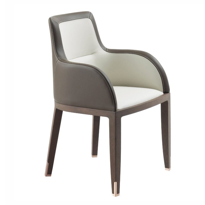 DEKA 54013 upholstered armchair, Sucupira or natural oak wooden frame, fabric or leather back outside, same or different fabric or leather back inside and seat, metal points.