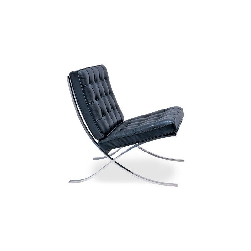 Reproduction Barcelona chair originally designed by Mies Van Der Rohe in 1929, manufactured from highly polished stainless steel available in a number of different quality leather finishes, elegant as a singles piece, dominant and commanding as a pair. Known globally as the most popular Mid Century designer classic lounge chair by MVDR.