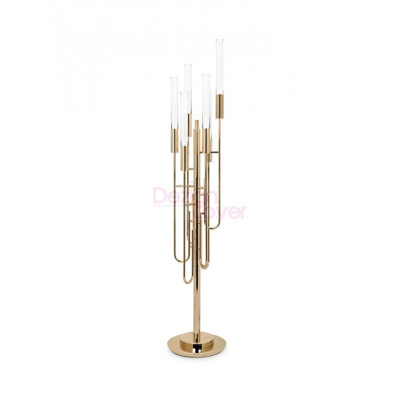 Allow yourself to fall for our unique Gala floor lamp elegantly made of gold plated brass and crystal glass. Our splendid floor lamp gets its inspiration in cheerful moments and intense design. It is the ideal contemporaneous shape to take a step further in interior design.