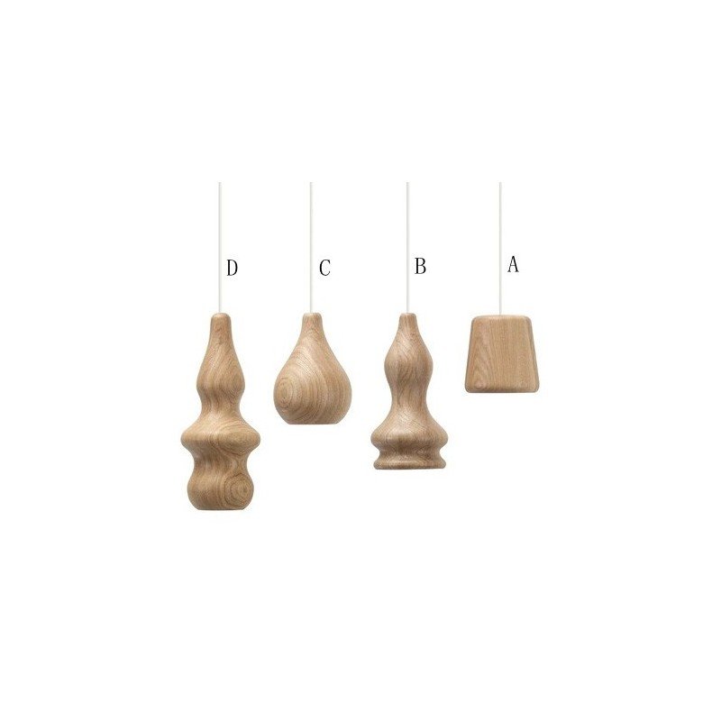 The Blub lamp collection contains sculptural light installations, stylish and minimaistic, but sculptural and original through the original use of blonde, richly textured wood. The pieces are most suitable for suspended lighting, whether placed individually or arranged into a group at varying heights. Their basic but playful and rounded shapes remind of bowling pins or stylized chess pieces.