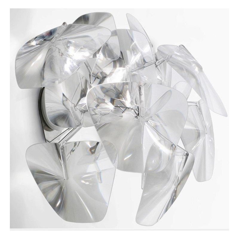 The wall lamp Hope consists of numerous thin polycarbonate Fresnel lenses that multiply the light from the light source and create a pleasant, glittery and party-like atmosphere, sprinkled with thousands of shards of light like the famous diamond which inspired the name: Hope.