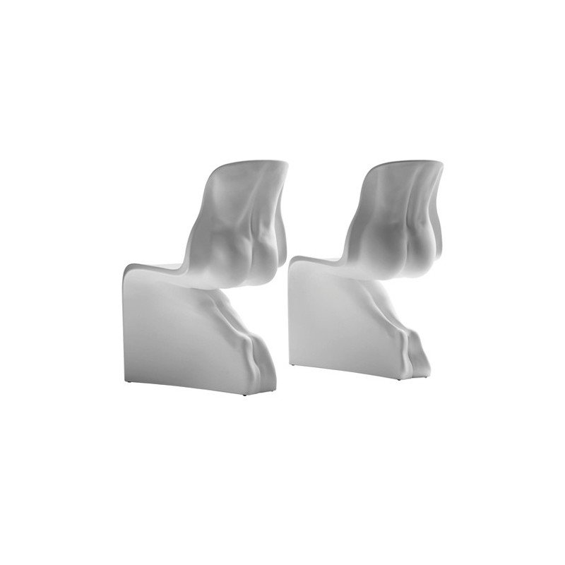 Déjà cultes, les fascinantes chaises anthropomorphiques Him & Her se situent à la frontière entre l'art contemporain et le design industriel. Le dossier de ces chaises révèle les formes d'une femme ou d'un homme nu : des corps sculptés comme des modèles de séduction.
