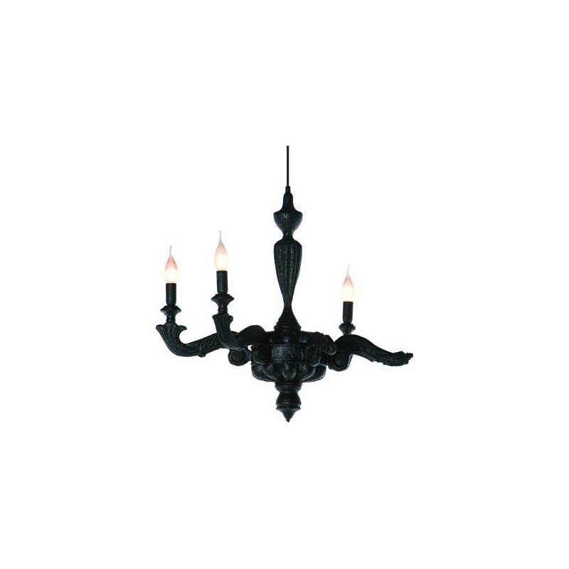 Ce chandelier design Smoke est un lustre de style ancien que le designer a carbonisé. Il possède 4 branches dont une qui a été consumée, chaque modèle est de ce fait une pièce unique. Le bois est ensuite recouvert d'une résine époxy pour garantir sa pérennité. Un luminaire design pour maison moderne en vente sur http://www.dezignlover.com/
