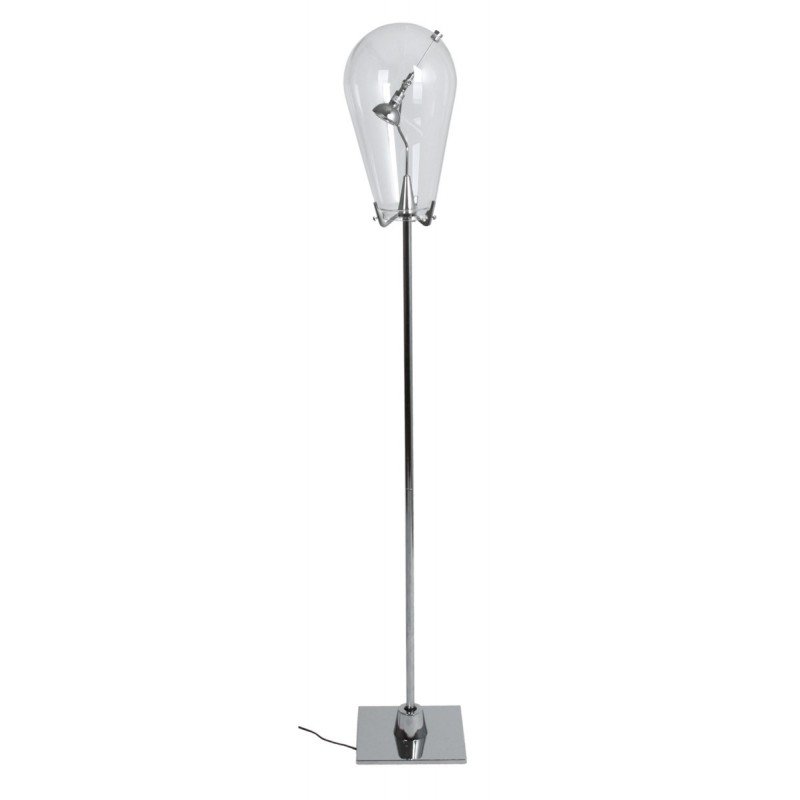 Mise sous globe, le lampadaire Blow en verre et métal brise les conventions avec humour et offre un lumière directe orientable.