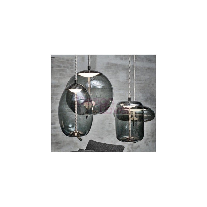 La suspension à LED Knot Cilindro est un luxueux présentoir de matériaux finement travaillés, associant une jeune fille soufflée à la main avec du métal et un cordon fibreux naturel. La beauté du design est que chaque finition de métal et couleur de verre semble parfaitement adaptée à n'importe quelle combinaison, parce que dans n'importe quel schéma de couleur, la lumière capture la perfection de chaque élément. Le cordon semble être tiré à travers le centre du verre, et culmine à travers la base, finissant la conception avec un bouchon en métal dans la même finition que le capot en métal.