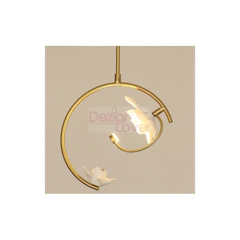 La suspension ronde Lure transforme la beauté éphémère d'une fleur en une lumière durable. Dans ce luminaire, une fleur en céramique est éclairée par une source de lumière LED suspendue. Tenue par un arc en laiton élancé, la lumière brille sur une fleur composée de pétales sculptés à la main, affichant texture, structure et délicatesse. La fleur blanche réfléchit la lumière, fournissant une source d'éclairage doux.