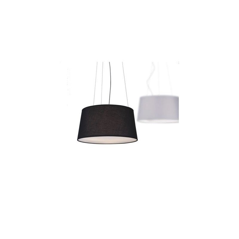 L’abat-jour de tissu de Tripod est résistant au feu et fermé par un disque en aluminium perforé et anodisé.