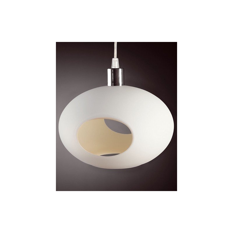 La suspension Ball Up consiste en une sphère de verre évidée et agrémentée de plusieurs ouvertures arrondies. La lumière passe par les ouvertures ménagées vers le bas et sur les côtés.